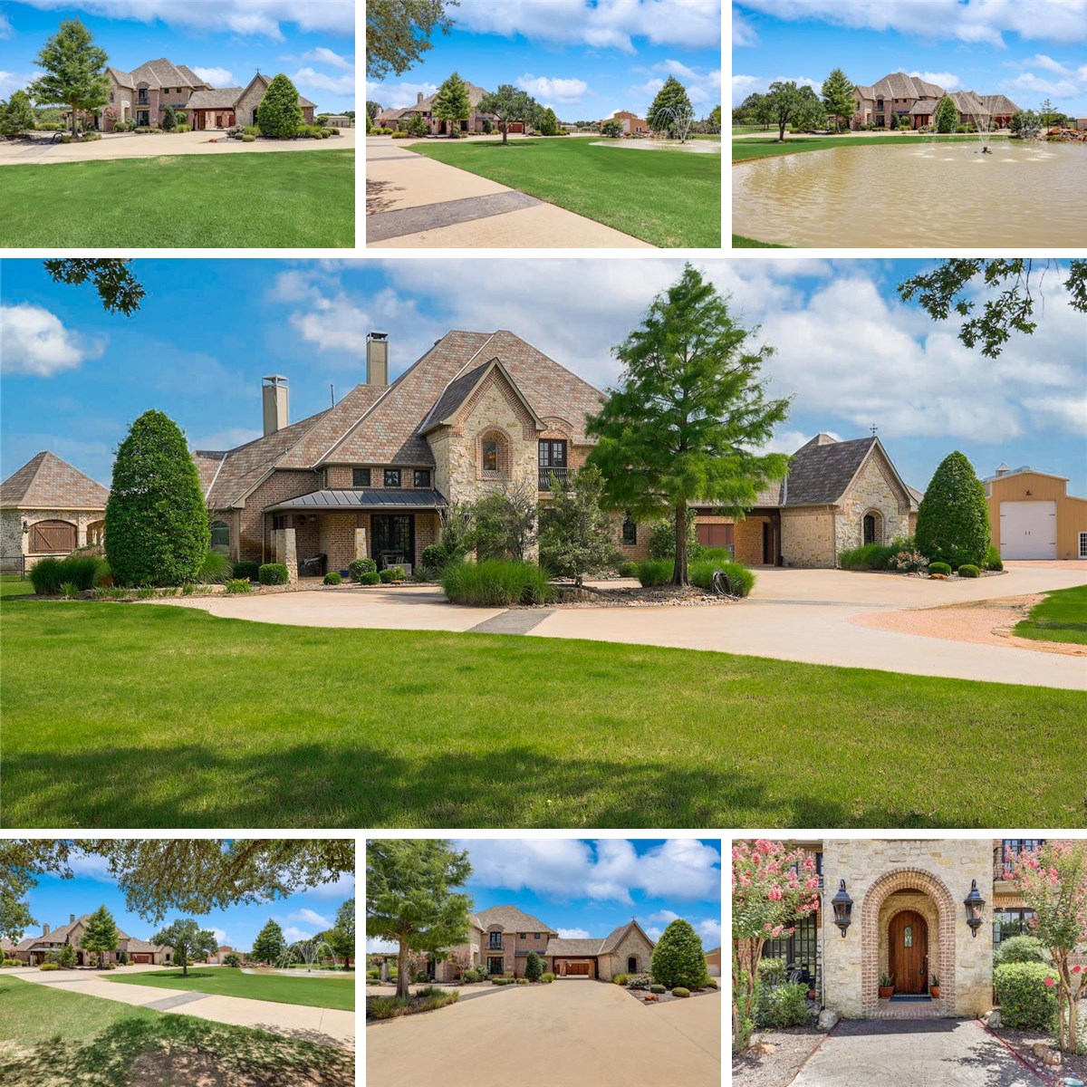Peaceful Perfection! Welcoming Texas Luxury Estate in the center of Flower Mound LOADED WITH UPDATES! A rare opportunity to own this move in ready estate on 8.35 acres! Wind peacefully on Scenic Drive and enter through the electric gate into this desirable New Haven custom built home. Gorgeous entry with soaring ceiling and designer entry lighting welcomes you home. Work from home in the large office with gorgeous front views and French doors. Comfortable, livable floor plan offers new carpet, updated colors throughout, hand scraped wood floors, custom molding, recently updated open chef’s kitchen with Fisher & Paykel gas range, built in refrigerator, large island and timeless brick arches accenting the oversized family room with gorgeous wood beams and beautiful backyard views. Exquisite wine cellar and butlers pantry convenient to kitchen and dining room...perfect for entertaining! Luxury primary suite on main level offers designer touches in the recently updated bathroom, two large walk in closets, bath, steam shower, and see through fireplace. Ideal multi-generational home with a second bedroom and full updated bathroom on main level with own private hallway. Upstairs offers 3 bedrooms, 2 bathrooms, large media room/living space and game room with outdoor patio balcony overlooking pool. Upstairs 5th bedroom, or flex room, is currently used as home gym. Resort style backyard includes large pool and spa with lazy river and outdoor speaker system. Pool re-plastered with pebble tec last year.Mosquito mist system a bonus! 900 square foot Cabana offers full outdoor kitchen and living area complete with 70" TV and heaters. Custom metal barn with finished floor, RV hookups, 14 foot door, drive thru doors, wash drains & more! Fence surrounds 7 acre pasture. Private 875’ deep water well to fill ponds and use for sprinkler system offers big savings!Pond/tank in pasture & front yard with fountain. 6 garage spaces featuring covered porte cochere. Close to Lake Grapevine, hiking, and biking trails. Exemplary Flower Mound schools. Horses and donkeys available to convey with property. Ag exemption currently in place. New HVAC units.